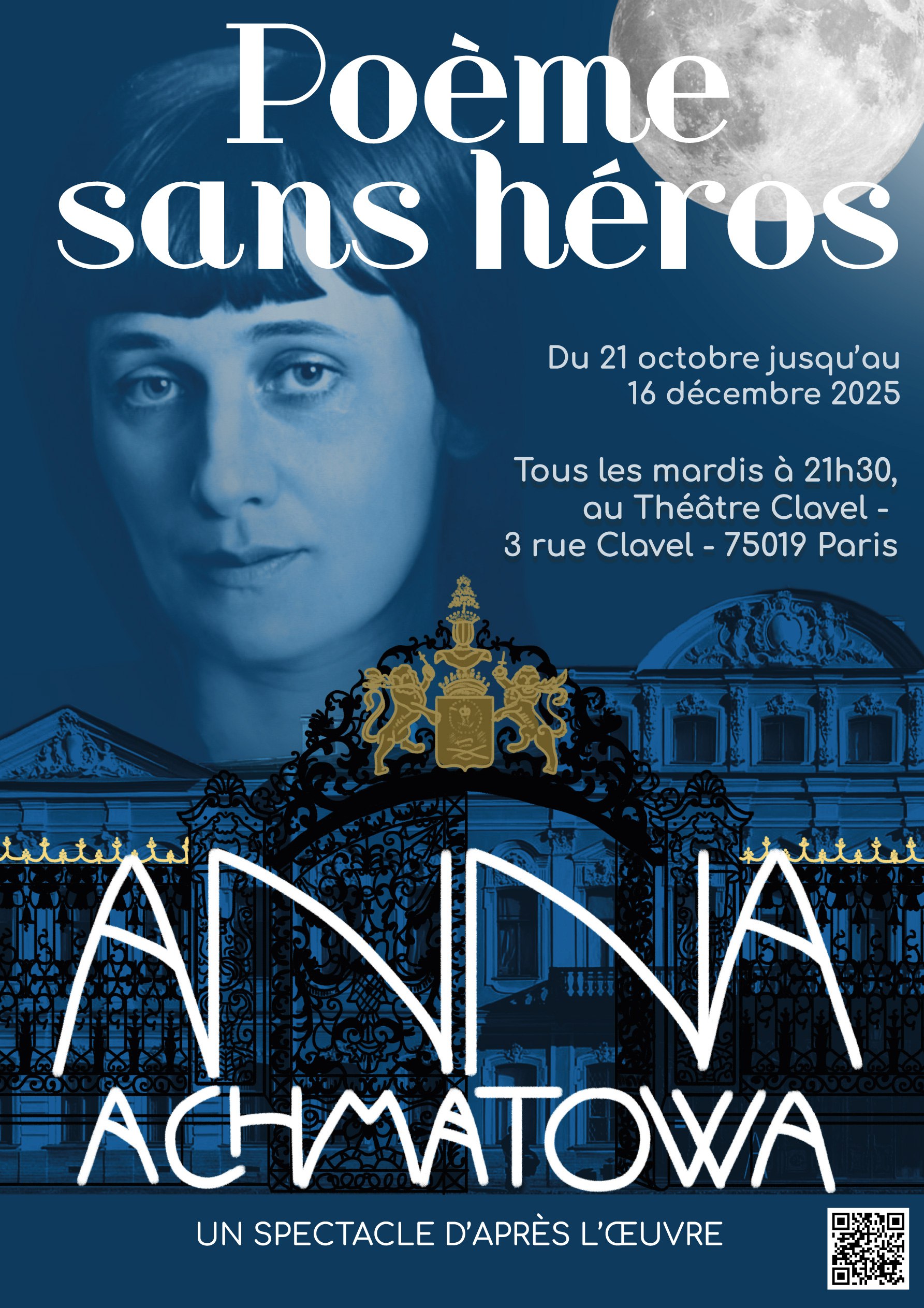 я рада пригласить вас на премьеру нового спектакля с режиссером Надеждой Сечкиной по «Поэме без героя» Анны Ахматовой 21 октября 2025 в театре Клавель (3, rue Clavel, 75019, Paris). Начало спектакля в 21:30.
